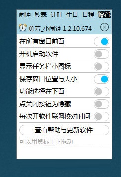 勇芳小闹钟是一款专业的时间提醒类的工具软件,软件支持定时关机、定时提醒、和热键报时等功能,十分方便快捷,界面简约,布局直观清晰,操作简单,极易上手,是一款不可多得的利器。