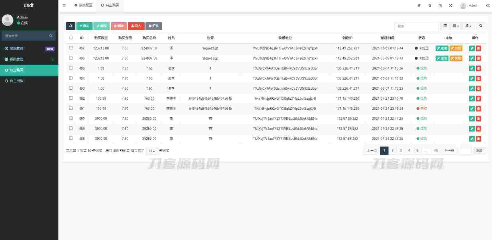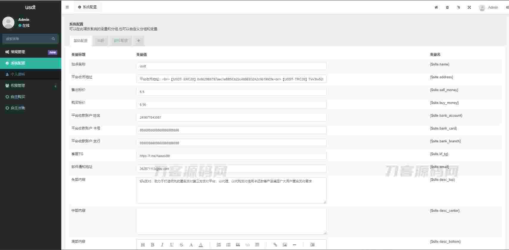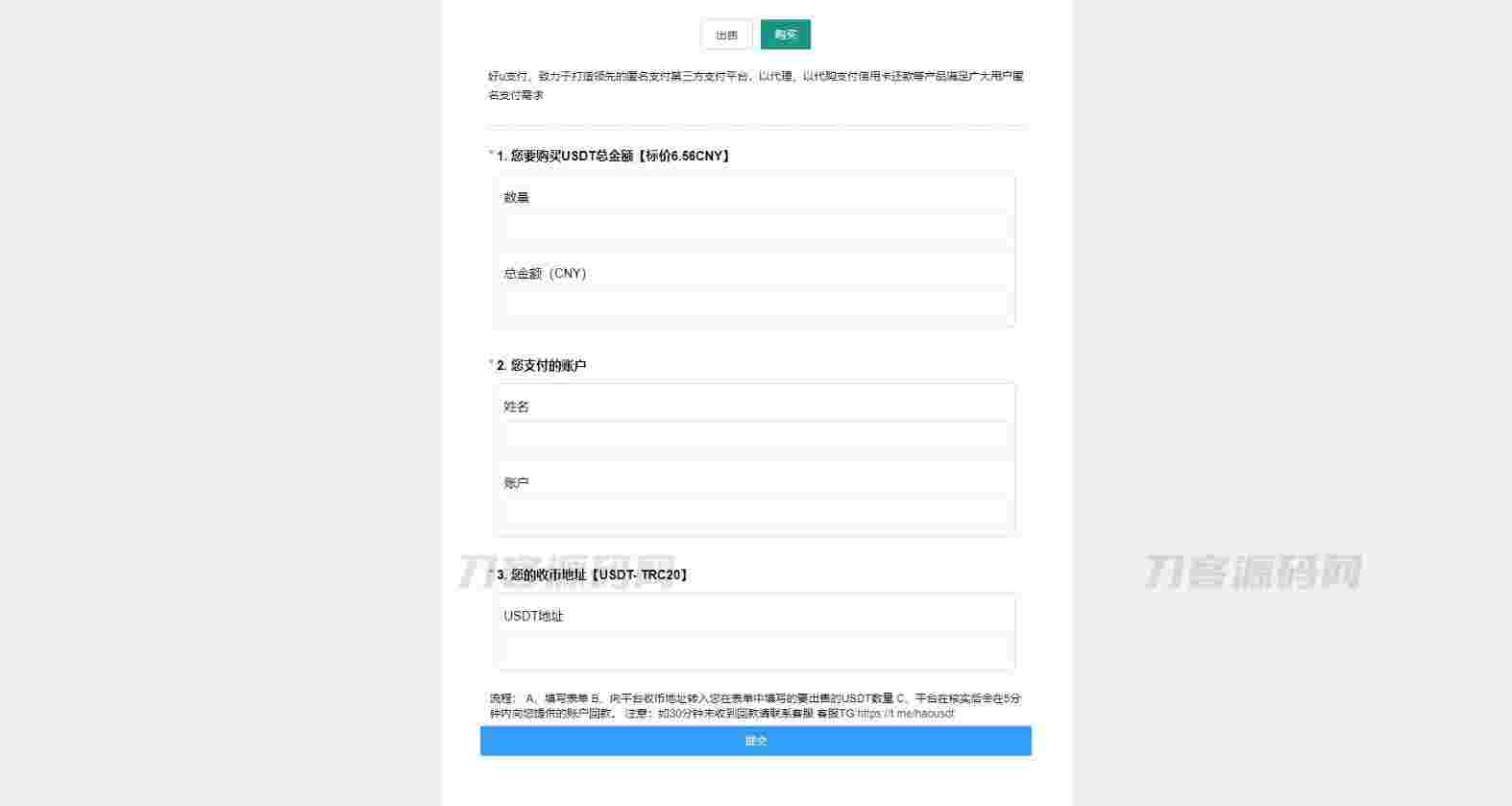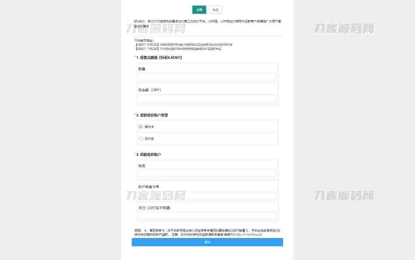 usdt出售购买价格根据后台配置数量不一样价格不一样。 前端输入内容提交后,后台会邮箱通知网站管理员处理订单。