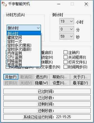千宇智能关机以多模式定时控制、安全便捷、极简设计为核心,结合低资源占用和免费无广告的优势,成为一款高效实用的定时管理工具,无论是个人用户管理作息,还是企业/家庭用户远程管控设备,均能提供精准解决方案,是同类软件中的轻量级优选,是一款很不错的软件,我们在日常生活中也能使用到!