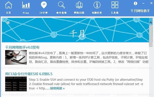 千月网络助手是一款专业的网络辅助的软件工具,软件的工具箱集成了常用网络工具,支持网络扫描、命令查询等等功能。非常方便快捷,软件界面简约,布局直观清晰。操作简单,容易上手,是一款十分实用的工具。