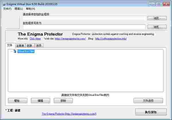打包文件的保护 Enigma 虚拟文件打包功能并没有对文件提供高强度的保护,如果您需要保护文件,建议您使用 the Enigma Protector完全版,其中已内建了虚拟打包文件功能。