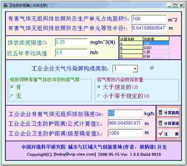 卫生防护距离是一款专业的卫生防护距离的计算工具软件。使用者可以使用软件根据已知的数据条件包括有害气体生产源的占地面积、等效半径、排放浓度、平均风速等等来计算合适的卫生防护距离。软件界面的排版直观明了,减少使用者使用的门槛。