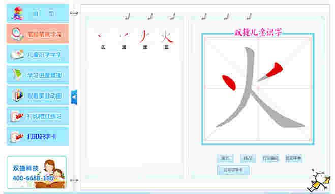 《双捷儿童识字软件》是一款非常有趣的识字软件,该软件支持动画,笔画和描红在内的多种学习方式,能够有效的带动小朋友的学习兴趣,非常推荐下载,感兴趣的用户可以在本站下载体验。