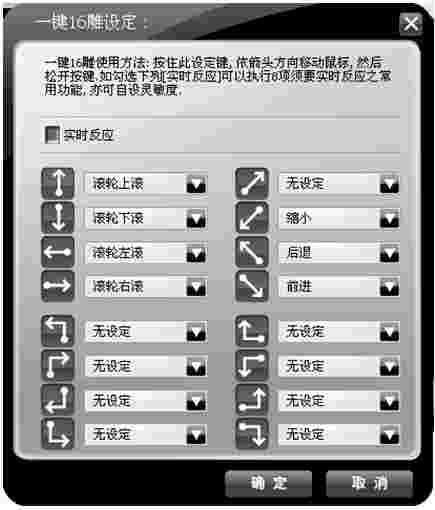 源自奥斯卡特色功能之一的一键16雕 ,使用时只需按住手势键,依箭头方向移动鼠标,