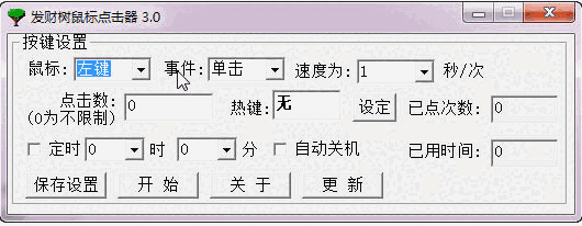 发财树鼠标点击器是一款专业的鼠标辅助软件工具,软件支持鼠标自动连点,可以模拟鼠标多次自动点击的效果。十分方便快捷,界面简约,布局直观清晰,操作简单,极易上手,是一款不可多得的利器。