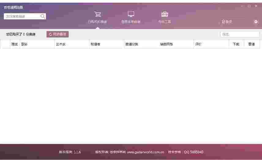 点击【同步曲谱】按钮可以同步您在吉他世界网已购买的谱子,再点击【下载】到浏览器!