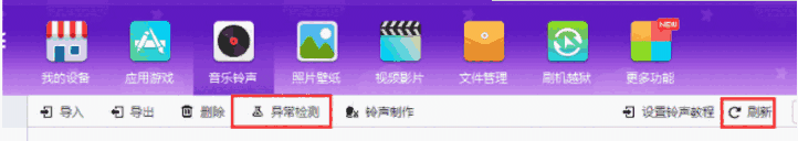 4、倘若点击“异常检测”-“刷新”之后还是看不到导入的铃声,卸载重装电脑上的iTunes之后,再重新导入,即可。