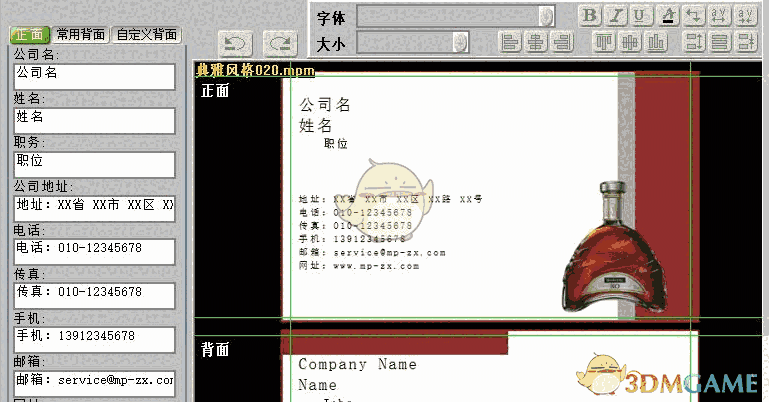 名片的背景图片可以设置为您的图片