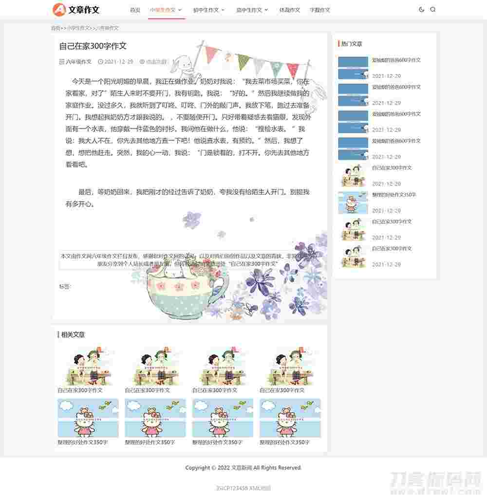 响应式小学初中作文网站pbootcms模板 文章资讯论文作文个人博客网站源码下载