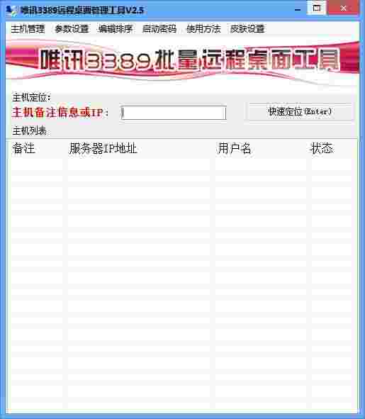 唯讯3389远程桌面管理工具是一款专业的远程桌面管理的软件工具,软件可以进行Telnet端口探测、查看自己的公网IP、域名定位ip。非常方便快捷,软件界面简约,布局直观清晰。操作简单,容易上手,是一款十分实用的工具。