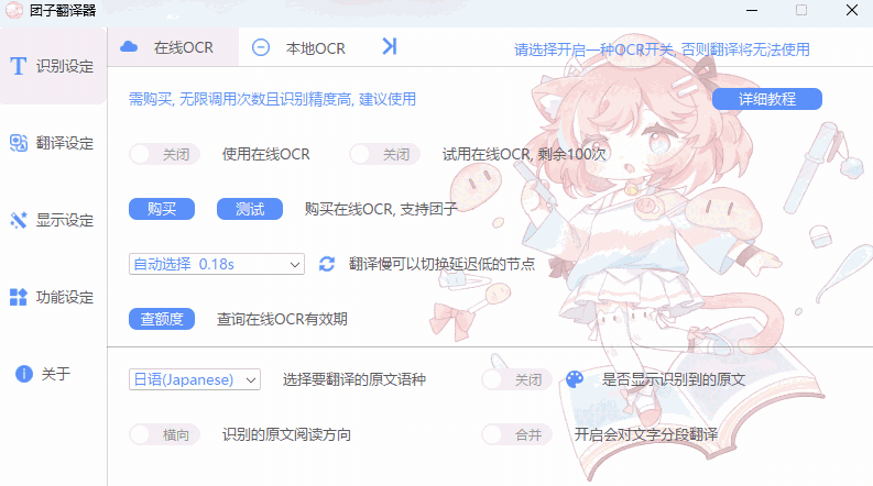 新加入了对【竖排文本的翻译模式】,额度为每天500次。可以啃生肉本啦 ~