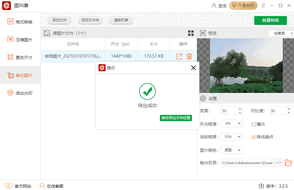 内置图片转换器、支持图片批量转换、轻松一键转换。