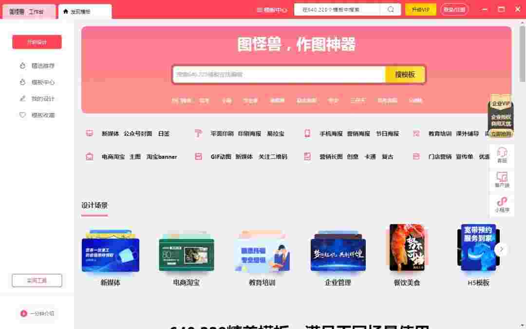 图怪兽Mac版是一款非常实用的在线编辑软件,软件界面美观,功能强大,操作简单,提供图片模板元素,用户可以通过替换和修改文字来完成图片设计,适合企业管理、新媒体运营、教师、人力资源行政、个体经营者的图片设计需求,包含丰富的素材和模板,可以帮助用户设计不同风格的海报和图片,能够满足不同的用户需求,感兴趣的赶快下载使用吧!