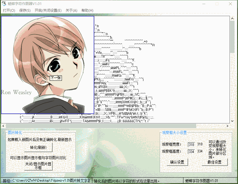 将转化后的图片以TXT的格式保存,保存时会自动讲字符图片分辨率保存保存成清晰超高的文本文件,也可以直接复制软件生成的最佳图案。