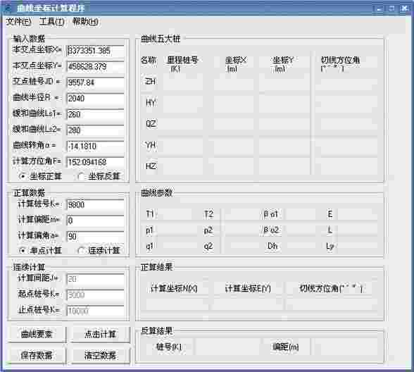 附有正算、反算功能,正算:通过里程和偏距计算坐标,反算:通过坐标反推里程和偏距。