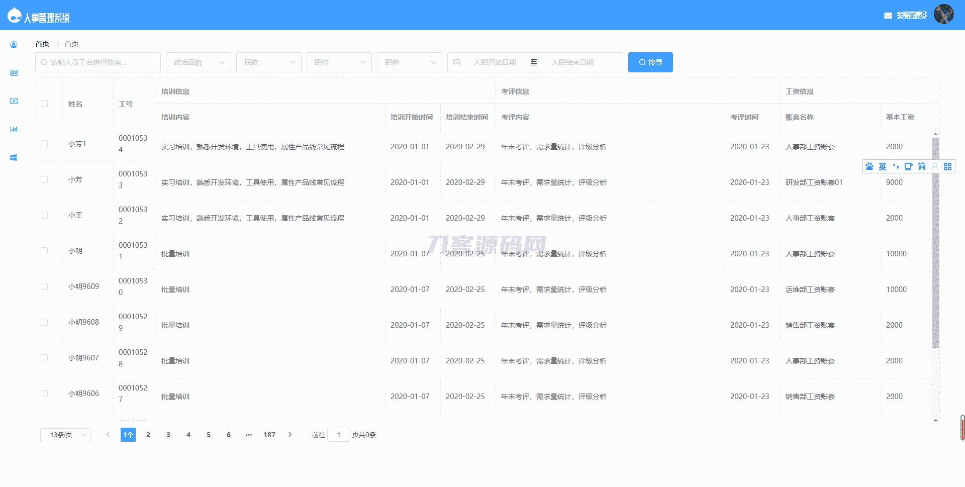 9080免费资源分享,PHP源码、网站源码、游戏源码、模板插件、软件工具、网络教程、为中国站长提供一站式源码下载 » 基于SpringBoot的人事管理系统源码