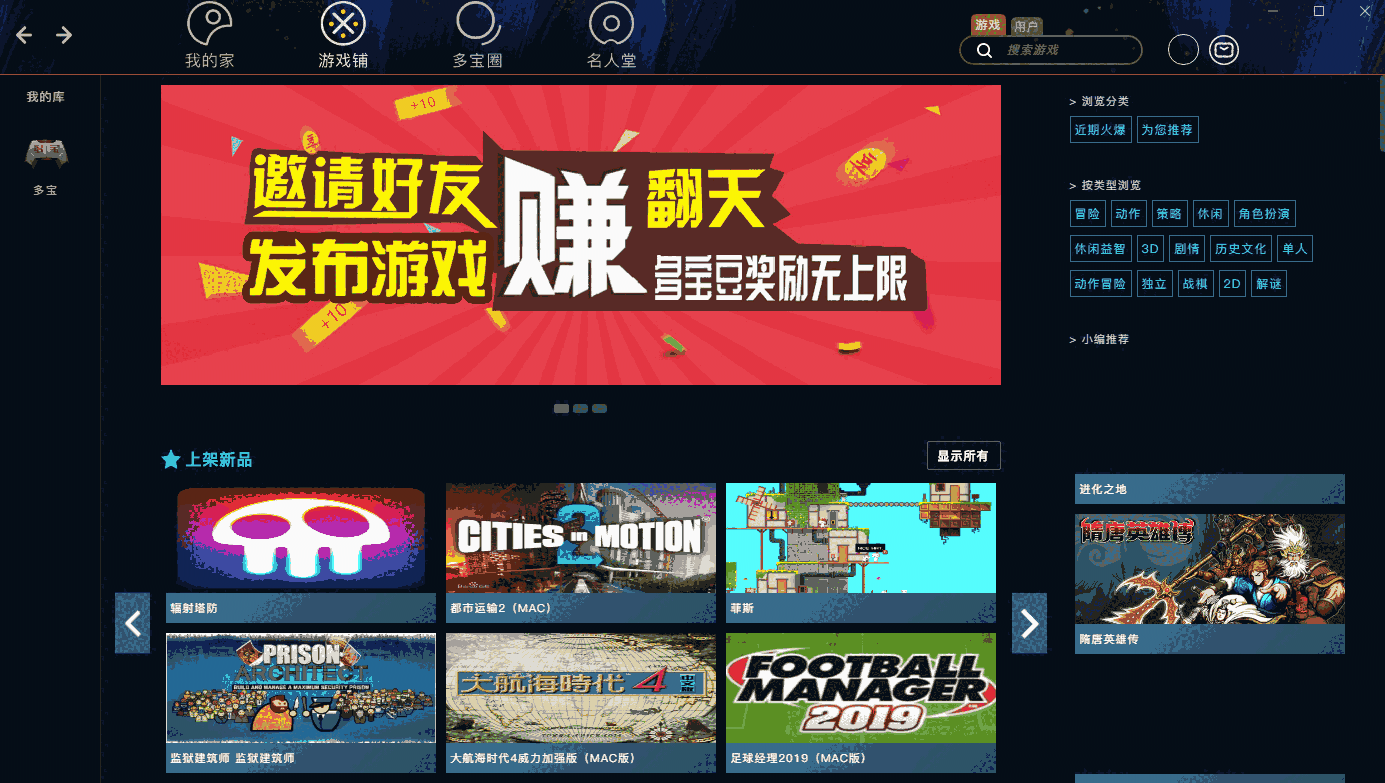 多宝已经上架多款最新和经典的Windows和Mac,而且每天都有更新,让您再也不用担心自己游戏荒!