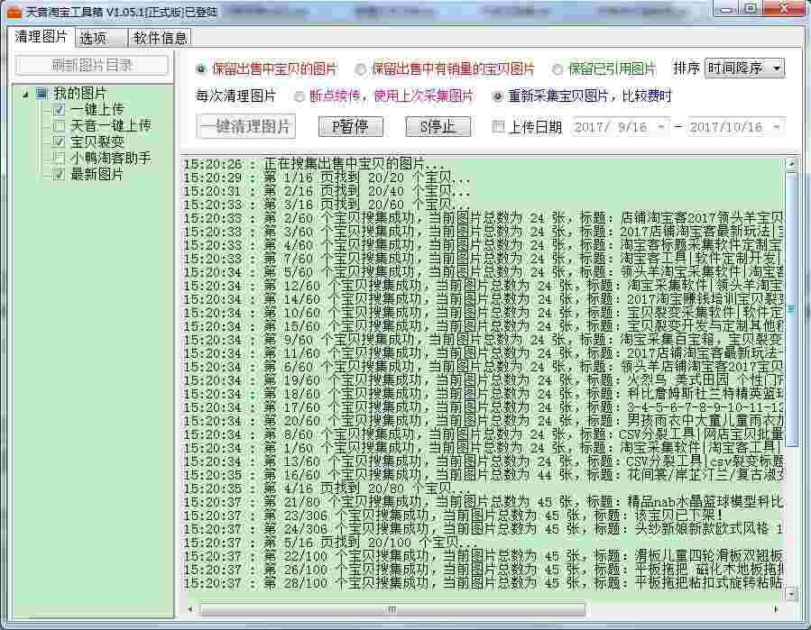 天音淘宝清理图片工具官方版可有效保留出售中宝贝的图片,可把所有宝贝图片搜集下来再执行删除,支持断点续传,软件停止和重启都可以继续搜集图片。软件限制只要有一个宝贝的图片未收集,或者有一页的宝贝未采集,都不会去删除图片。只有图片搜集完整,删除图片才不容易出现误删。