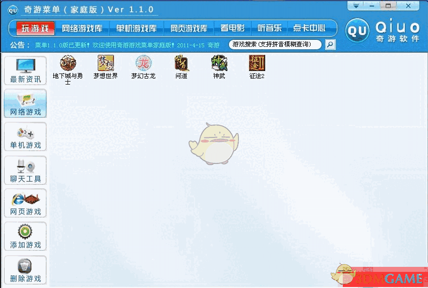 5、奇游游戏菜单更新菜单界面,更美观、方便易用。
