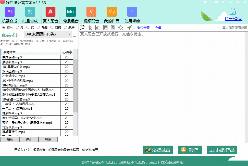 专业软件,简单易用,好易迅配音专家专注解决语音合成