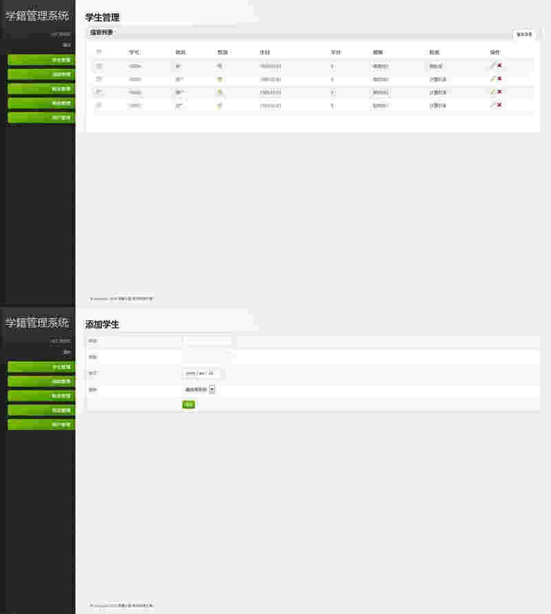 thinkphp学籍管理系统源码,基于thinkphp3.2框架开发的教学管理系统后台程序,毕业设计的作品,通过了指导老师的实践考核。 自带数据库文件,模板分离易维护,适合二次开发。