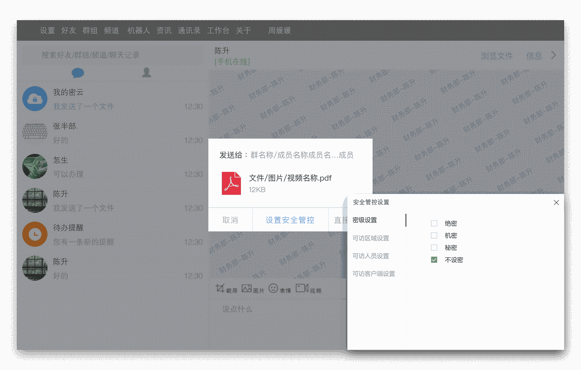 支持绝密会话、阅后即焚、远程销毁、消息回执等功能
