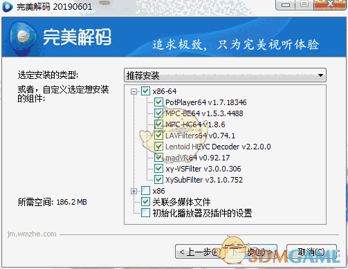 5、推荐安装建议选择默认设置即可,如果取消勾选可能会导致视频无法播放