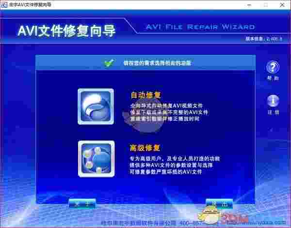 全导向式自动修复AVI视频文件,恢复下载或采集不完整的AVI文件,重建索引数据并修正播放时间