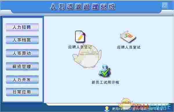 1、人力招聘:应聘人员登记、应聘人员复试、新员工试用评核;