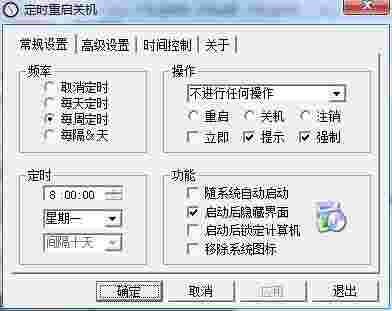 定时重启、关机、注销,包括每天定时、每周定时、间隔&天定时功能,可以随系统启动,隐藏图标等等。
