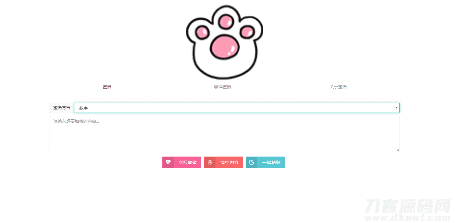 可以将文字、字母、数字、代码、表情、标点符号等内容转换成新的文字形式,通过简单的文字以不同的排列顺序来表达不同的内容!无需数据库 PHP源码 支持在线加密解密 有多种加密展示方式。