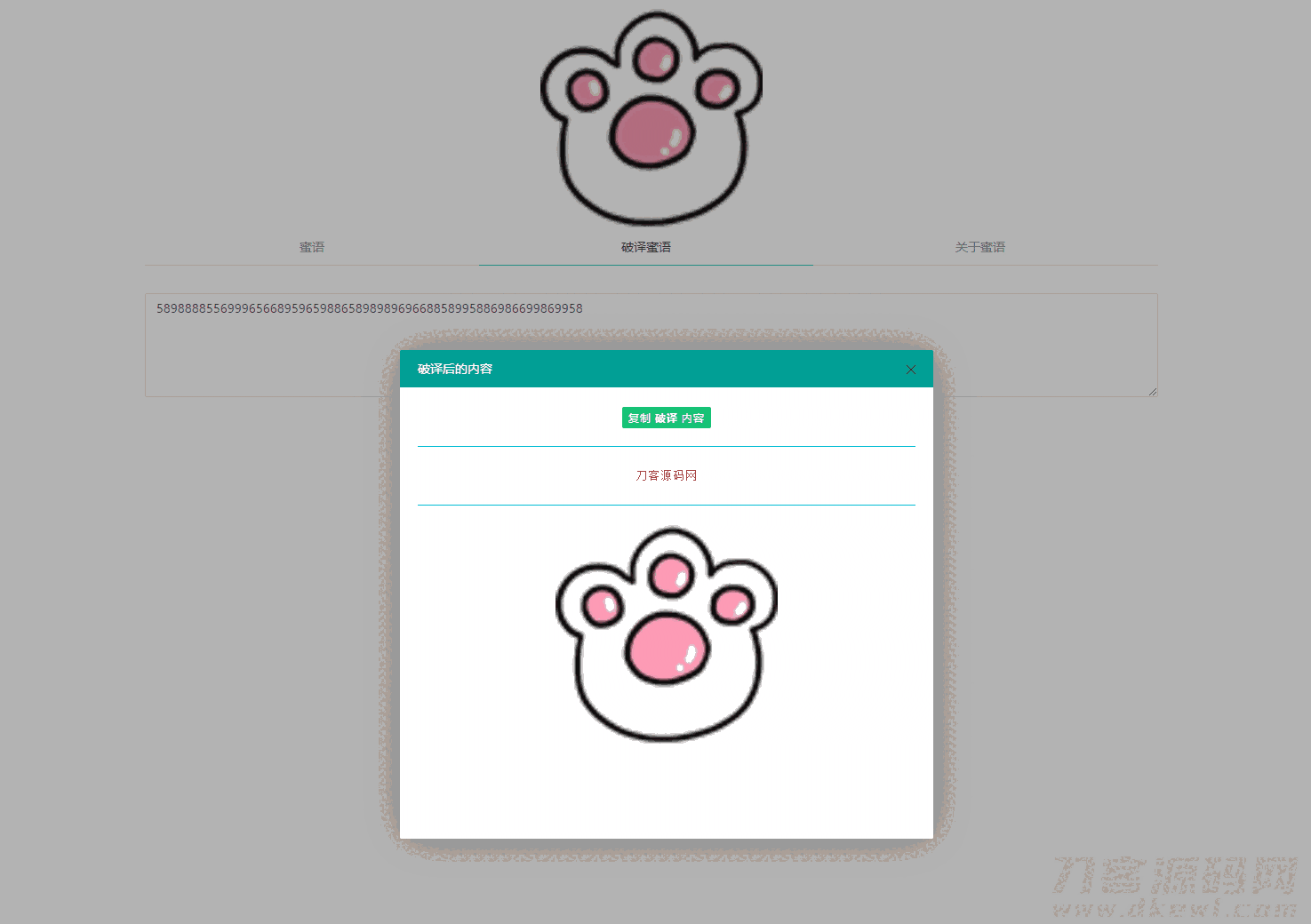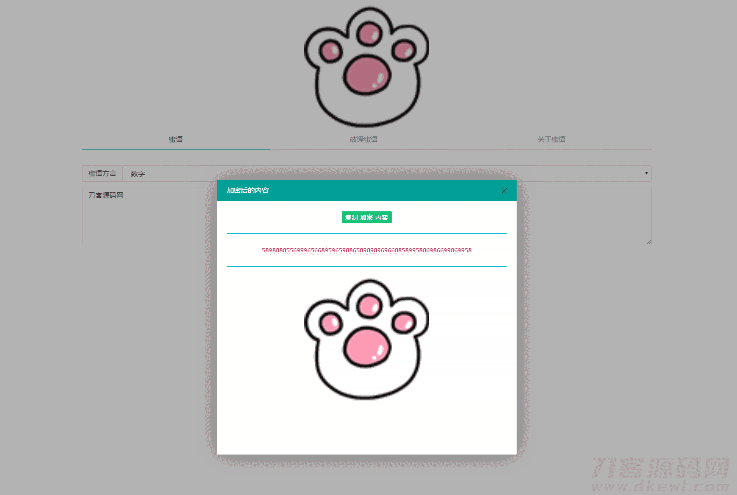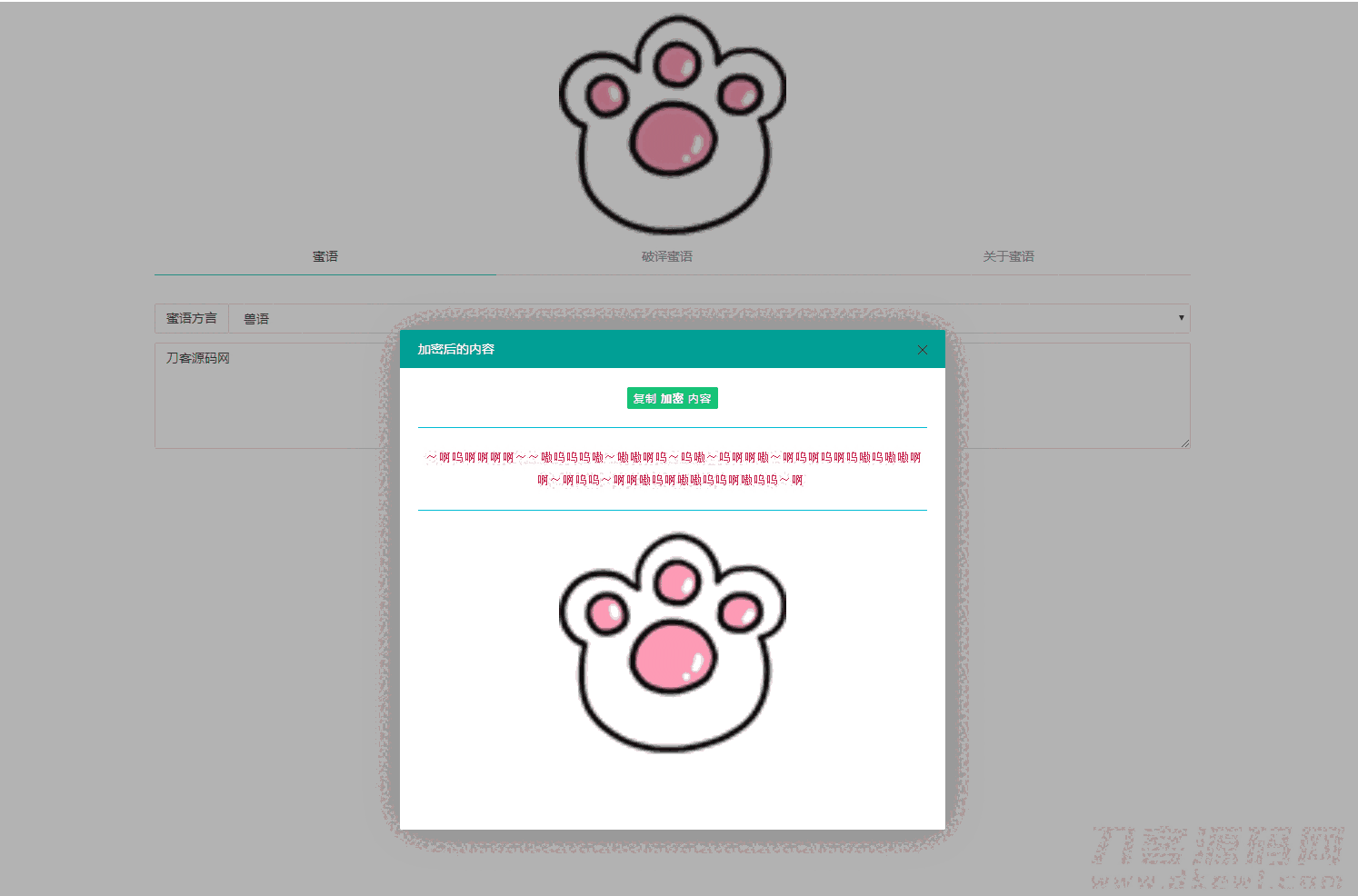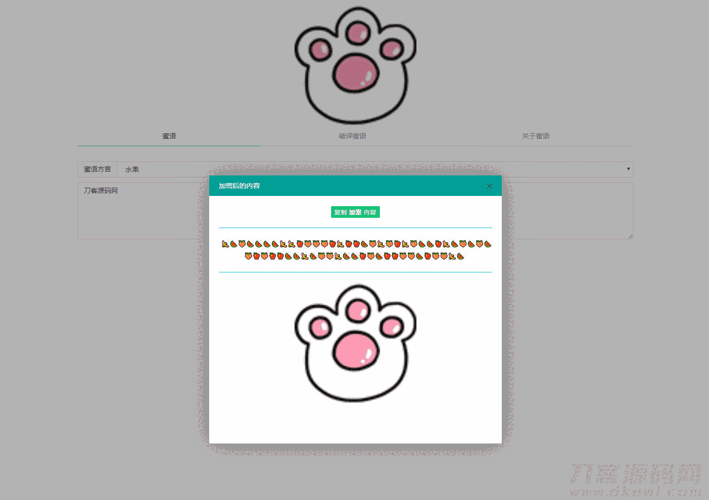 9080免费资源分享,PHP源码、网站源码、游戏源码、模板插件、软件工具、网络教程、为中国站长提供一站式源码下载 » 密语文字在线加密解密php源码