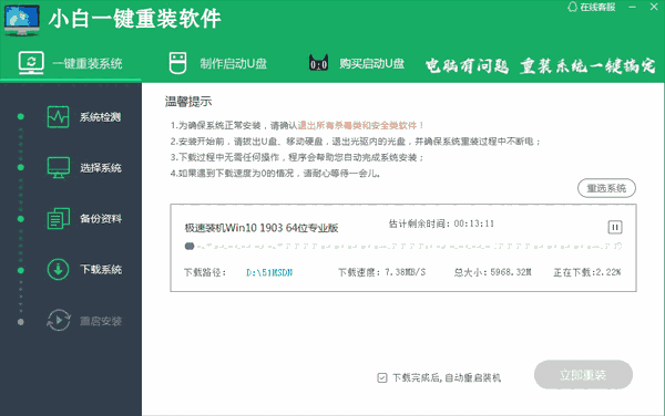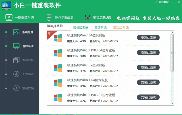 小白一键重装软件是一款装机必备的系统辅助类工具软件,软件界面设计美观简洁,布局非常直观清晰,小白也可轻松操作。软件支持一键自动备份、重装系统和还原系统一站式服务,无需多余操作。