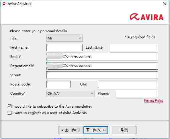 5、输入相关个人信息,只有邮箱是必填项,然后点击下一步。