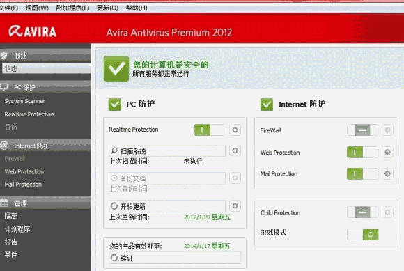 小红伞p版,Avira AntiVir是一套由德国的Avira公司所开发的杀毒软件。Avira 除了商业版本外,还有免费的个人版本。它的接口没有如此的华丽,也没有耍噱头而无用的多余项目。是一款知名的免费杀毒软件,用户超过七千万,它改写许多人“免费杀毒软件就一定比较差”的观念,在系统扫描、即时防护、自动更新等方面,表现都不输给知名的付费杀毒软件,甚至比部分商业杀毒软件还要高,因此成为许多用户挑选杀毒软件的首选。采用高效的启发式扫描,可以检测70%的未知病毒。在专业测试中是所有免费且是自主杀毒引擎的防病毒软件中,侦测率最高的。一些知名的杀毒软件像360,qq电脑管家等也采用小红伞的引擎!