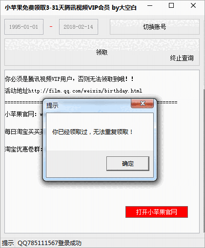 小苹果免费领取3-31天腾讯视频VIP会员1.0