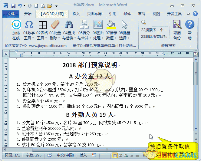 包括数学工具、表格工具、批量删除、查找与替换、拆分与合并、图片处理、标示数值、批量选择、重定义文档页码、快捷设置、导出所有批注、转换文件格式、数值加密、突出括号字符、插入编号、段落自动缩进、标点统一全角半角、解除限制编辑、切换页面、纠正日期格式、截图工具、搜索下一个、删除所有目标、自动备份等70多个实用Word功能,极大加快Word的编辑效率。