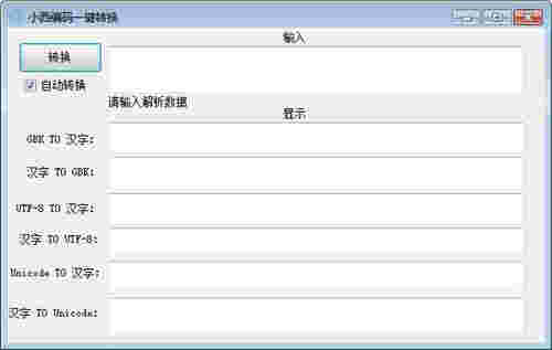 小西编码一键转换是一款专业的编码转换的工具软件。使用者可以通过软件实现gtk编码、汉字编码、UTF-8编码、Unicode编码之间的互相转换。软件的使用方法也很简单,在输入的一框中输入编码内容,然后点击转换即可获取转换后的编码。
