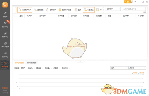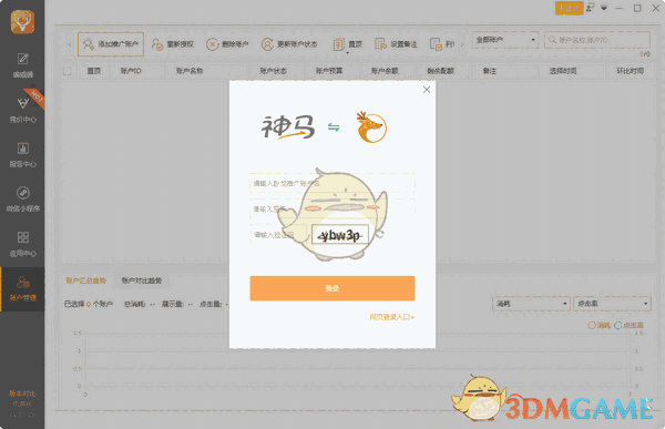 首次登陆小鹿卧龙助手会首先进入账户管理页面,成功添加绑定卧龙推广账户后才能使用小鹿卧龙助手提供的各项功能服务,在账户管理页面可以对推广账户进行添加、删除、刷新、重新登陆等操作。