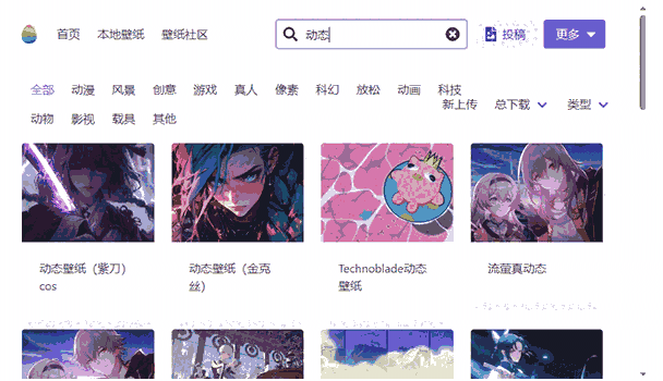 1、在搜索栏中输入动态,就可以找到对应的动态壁纸。