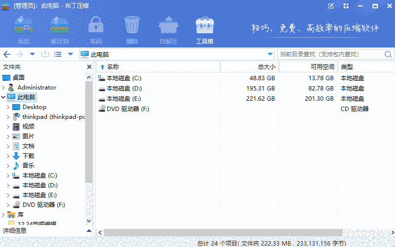 布丁压缩是一款专业的解压缩文件的工具软件,软件支持多种压缩格式,并且软件免费无广告无弹窗就很舒服,十分方便快捷,界面简约,布局直观清晰,操作简单,极易上手,是一款不可多得的利器。