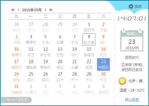 空间,时时点击任务栏时间显示的地方就可以跳出我们的开心日历界面.方便不影响你的PC界面。