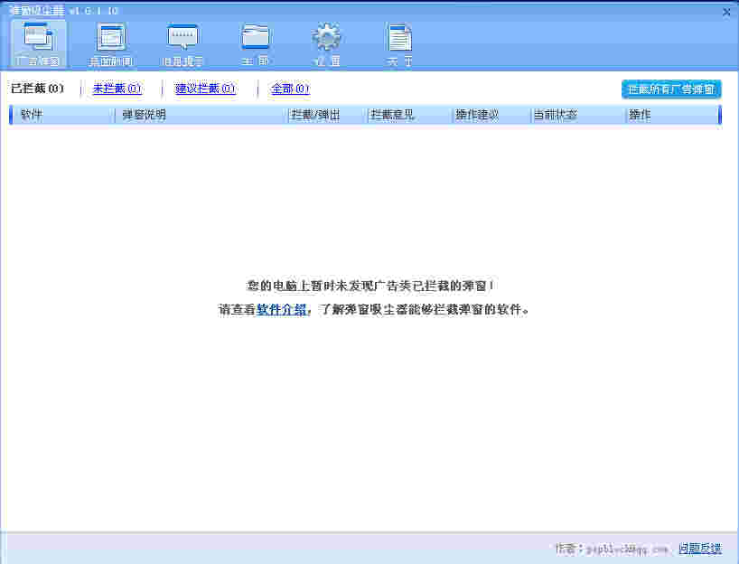 《弹窗吸尘器》是一款拦截弹窗的小工具,工具占用小效果好可以拦截各类弹窗,使您免除弹窗的骚扰,工具界面简洁明了,操作简单运行后即可,是一款值得下载的好软件,感兴趣的朋友可以在本站下载体验。