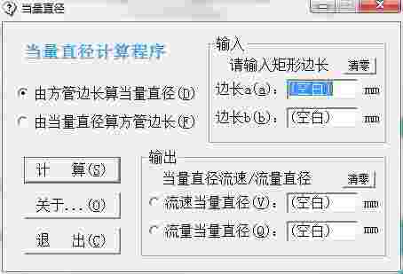 当量直径计算程序是一款专业的流速和流量当量直径的计算工具软件。软件可以帮助使用者快速计算流速和流量当量直径。软件的使用方法也很简单,选择计算的模式,输入已知条件数据包括边长a、b,最后点击计算即可。