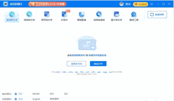 音频转文字:录音识别王支持多种如MP3、m4a、wma、aac等音频格式转换为文字
