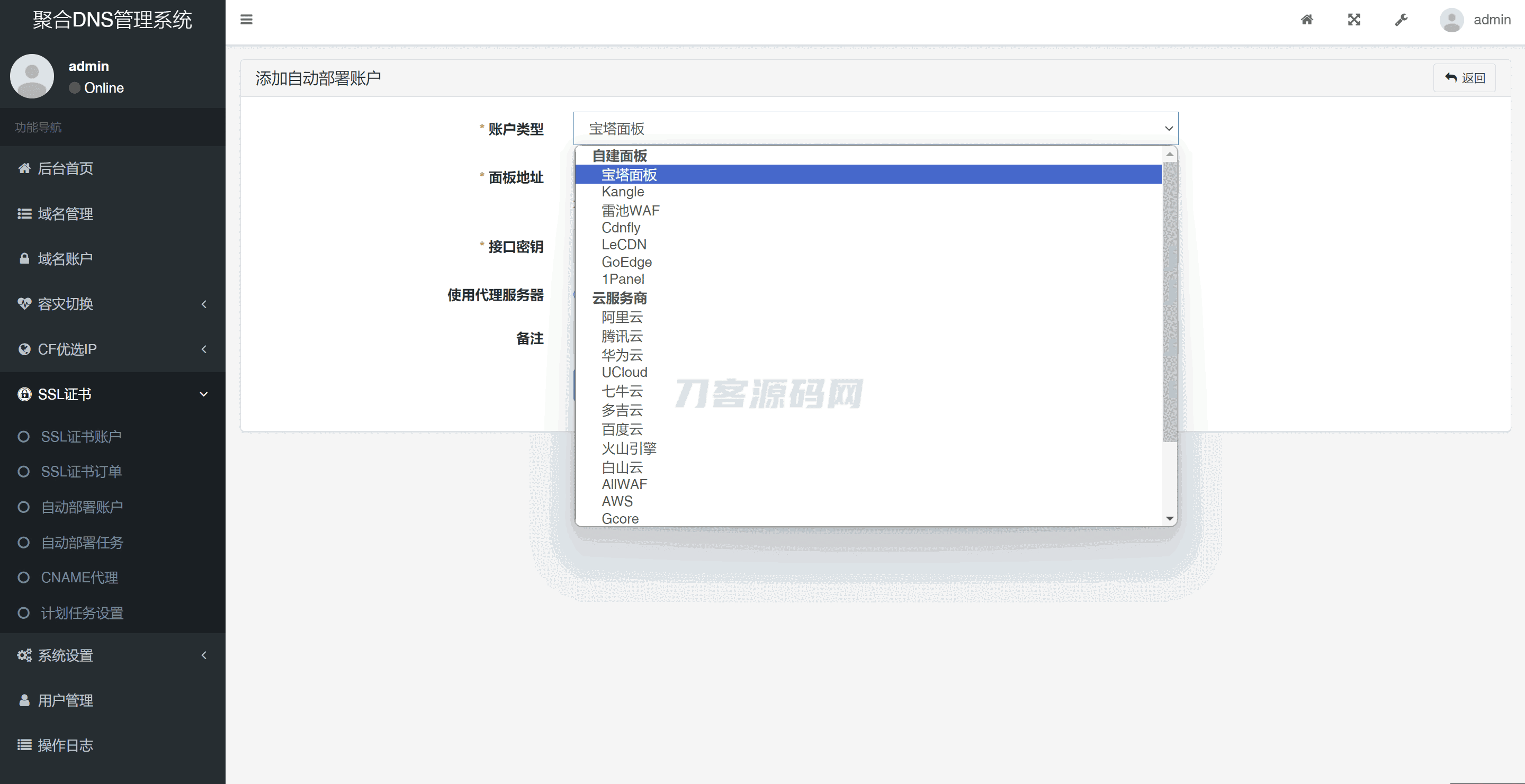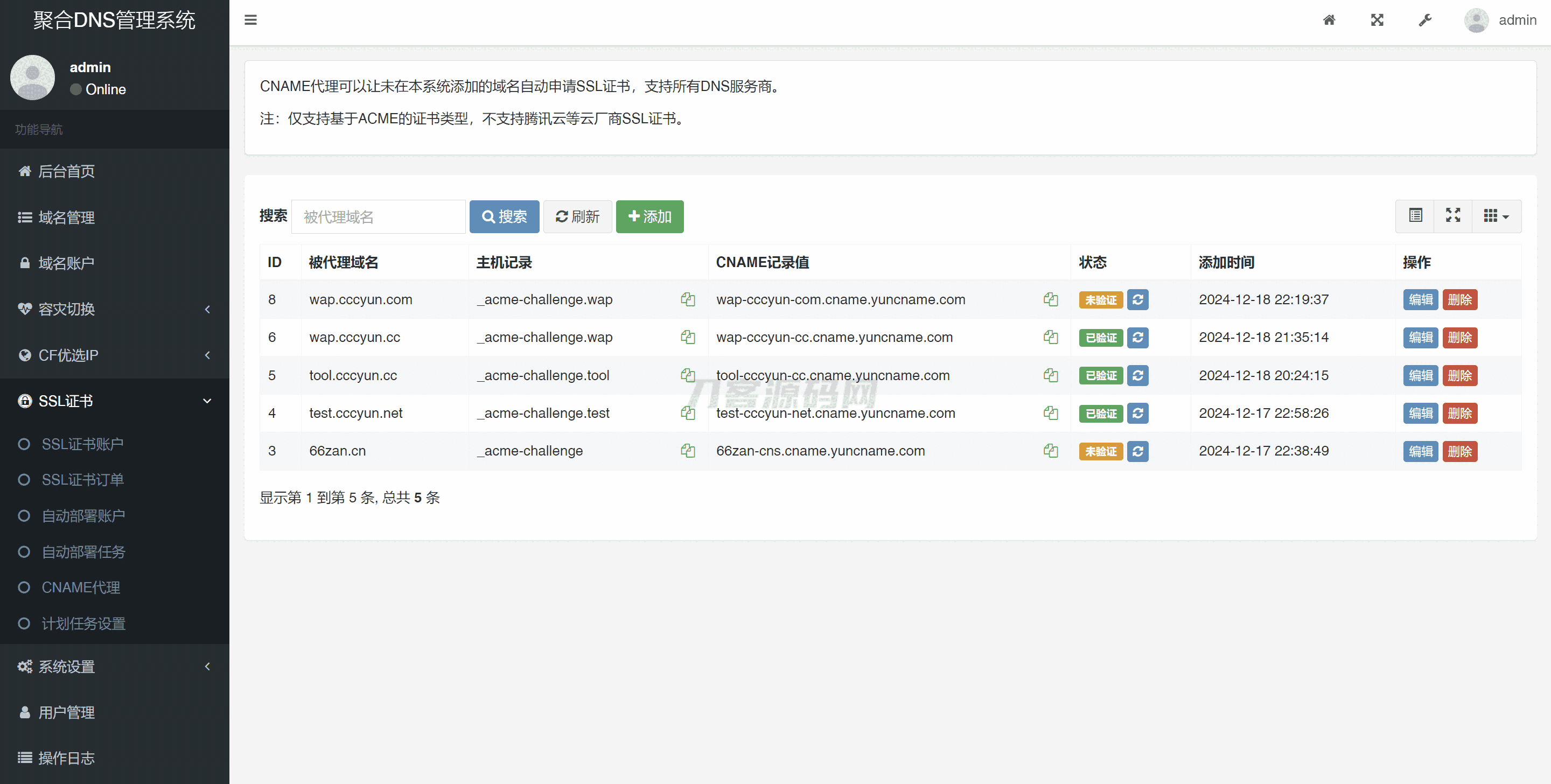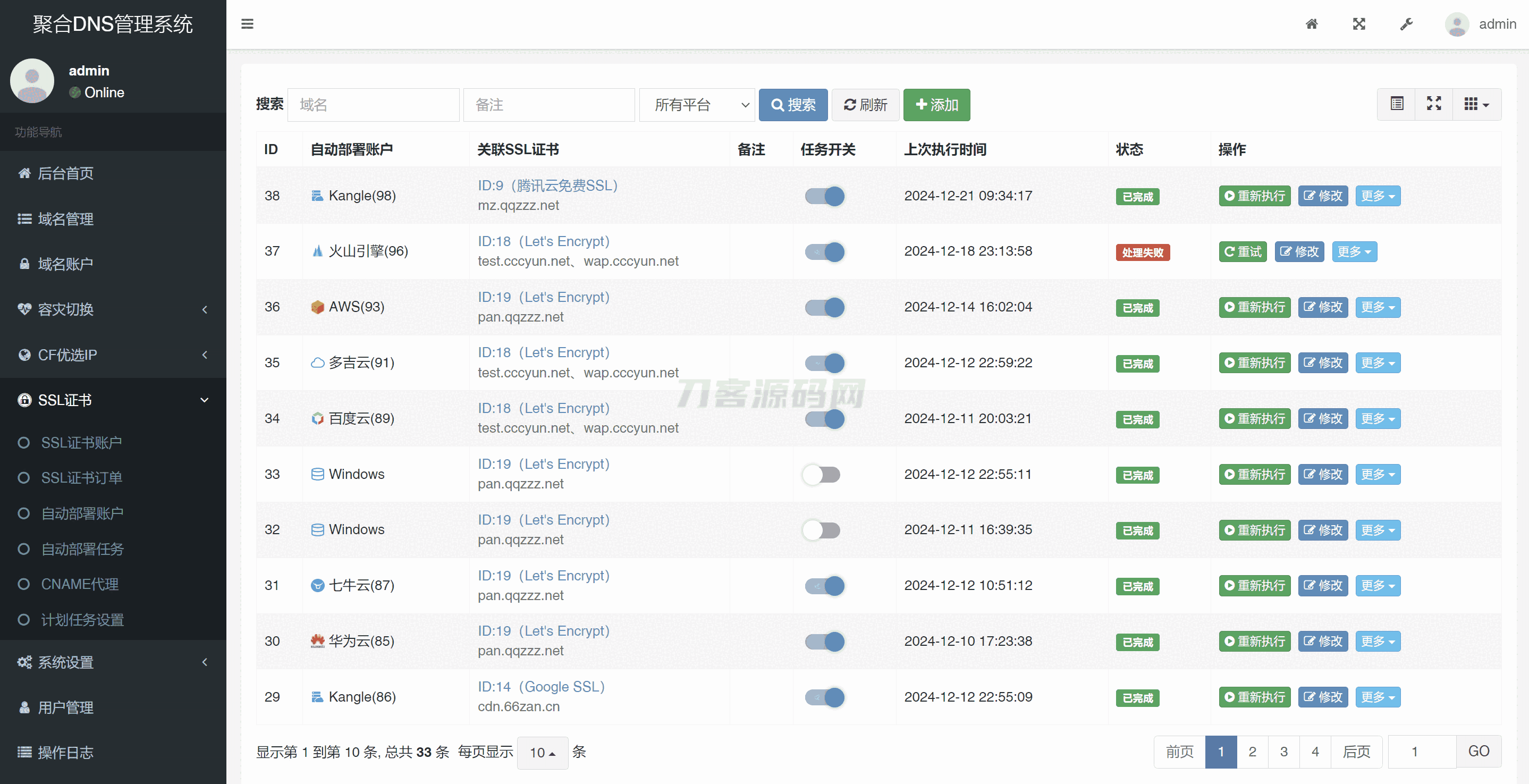彩虹聚合DNS管理系统源码V2.0.1,SSL证书自动申请与部署