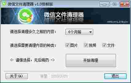 微信文件清理器是一款专业的微信垃圾文件的清理工具软件。使用者可以通过软件来清理微信产生的垃圾文件包括图片、视频、文件。使用者可以根据自己的需求清理指定时间范围内的文件。软件的使用方法也非常简单,只需操作几步点击开始清理即可。
