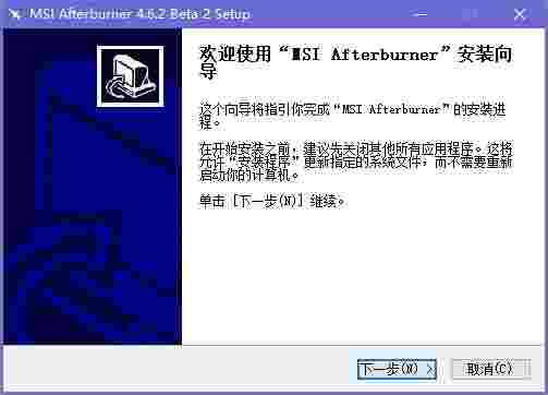 1、在本站下载微星显卡超频工具软件,解压之后双击.exe,出现一个安装向导界面,点击“下一步”继续。