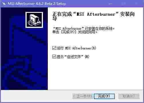 7、微星显卡超频工具安装完成,点击“完成”即可退出安装界面。