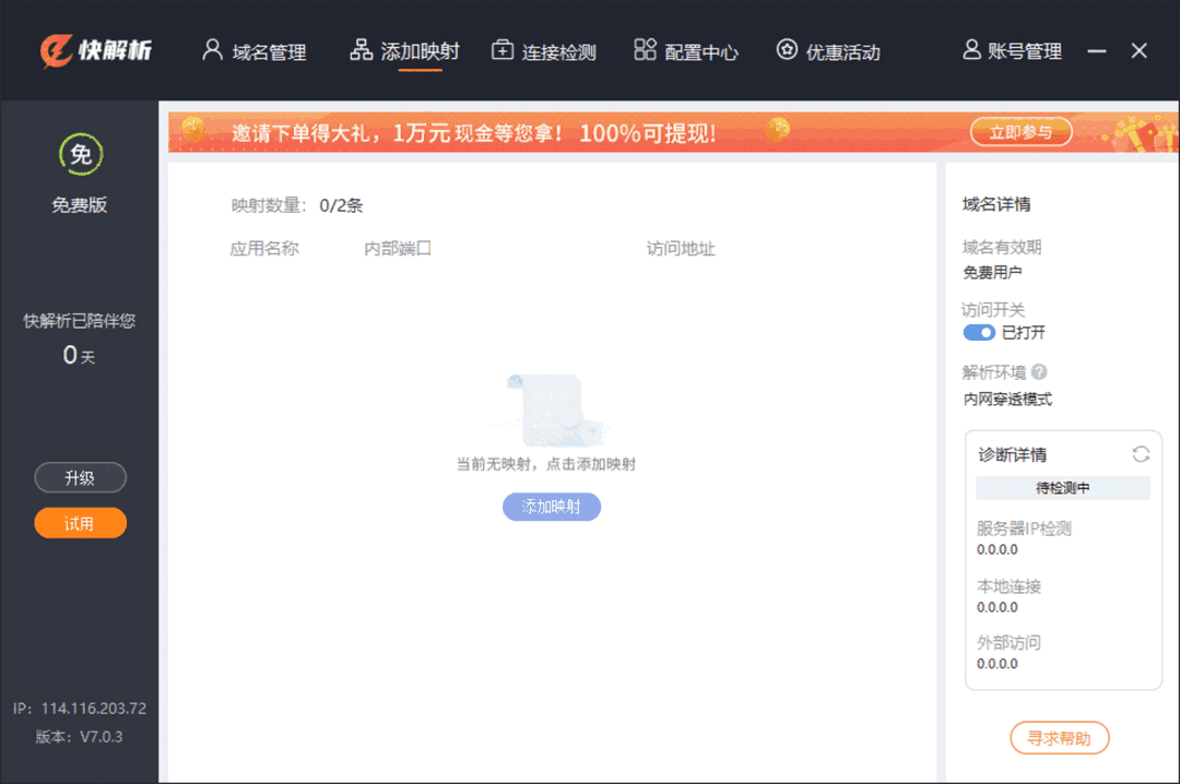 快解析是一种非常实用动态域名解析工具,软件功能强大,主要功能是内网服务器上的应用资源能够在外网访问,可以在任意网络环境下实现对企业内部ERP、OA、CRM等应用的访问,使用内网穿透工具,用户不再受限于网络环境,可以方便地远程管理和访问内部应用,满足企业、个人远程办公的需求,大大的提高工作效率,感兴趣的小伙伴赶快下载使用吧!